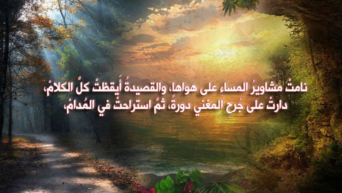 Read Moreبقلم غسان عبد الله نامتْ مشاويرُ المساءِ على هواها، والقصيدةُ أَيقظتْ كلَّ الكلامْ، دارتْ على جُرحِ المغني دورةً، ثمَّ استراحتْ