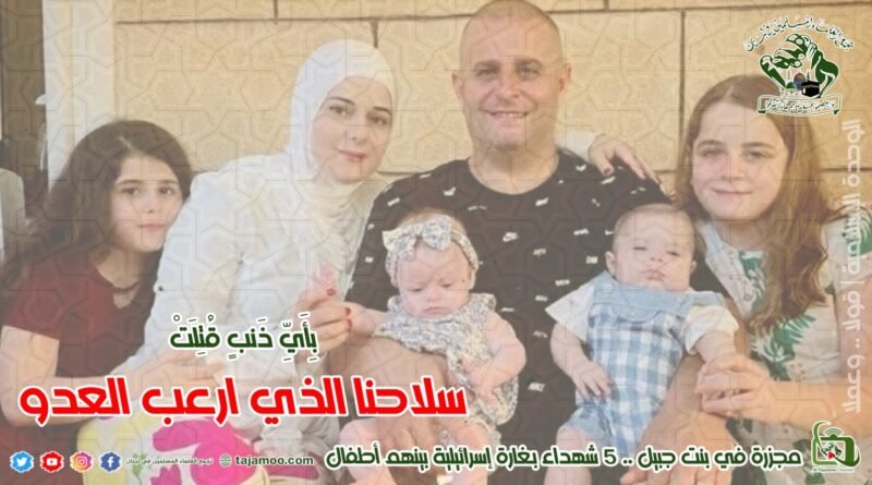 تعليقاً على المجزرة التي ارتكبها العدو الصهيوني بحق عائلة في بنت جبيل أصدر تجمع العلماء المسلمين البيان التالي: إن الجريمة