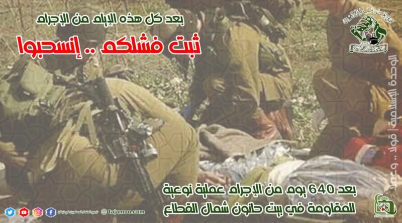 Read Moreتعليقاً على العملية البطولية التي قامت بها المقاومة الفلسطينية في بيت حانون، أصدر تجمع العلماء المسلمين البيان التالي: بعد 640