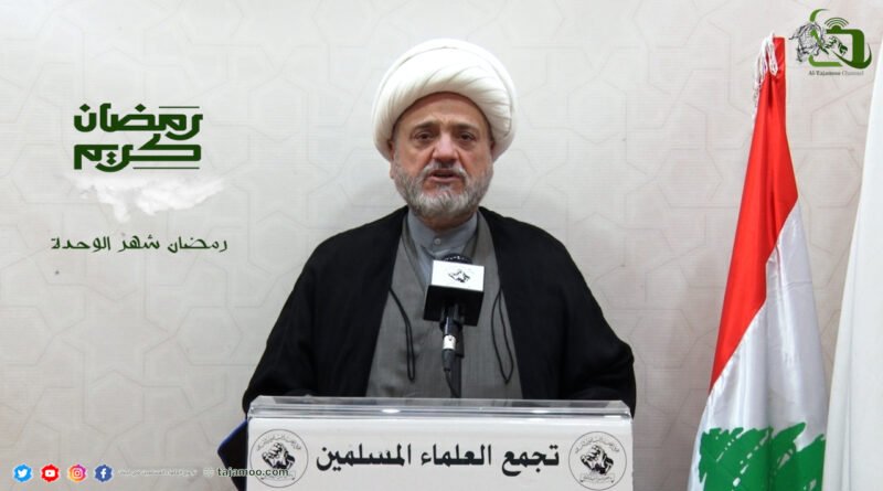 بمناسبة حلول شهر رمضان المبارك وجّه تجمع العلماء المسلمين رسالة إلى المسلمين في العالم عامة ولبنان وفلسطين خاصة تلاها رئيس