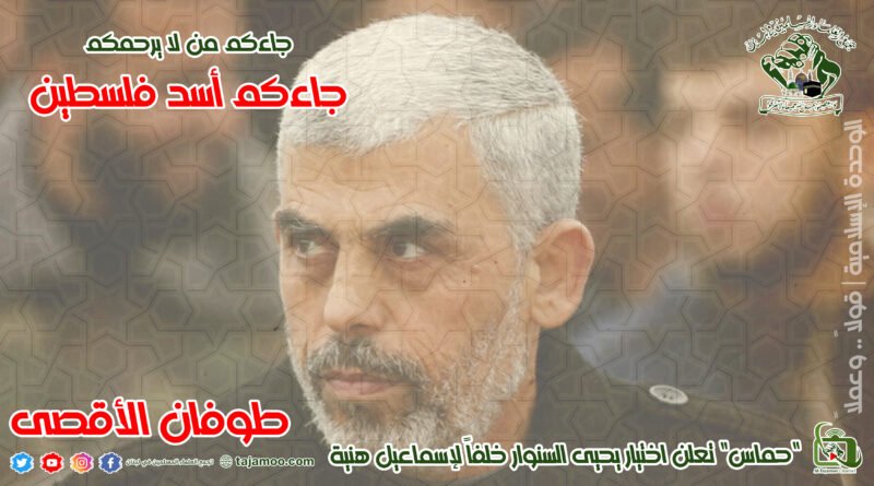 Read Moreتوجه تجمع العلماء المسلمين برسالة تهنئة لحركة حماس على اختيار الأخ المجاهد الحاج يحيى السنوار رئيساً للمكتب السياسي هذا نصها: