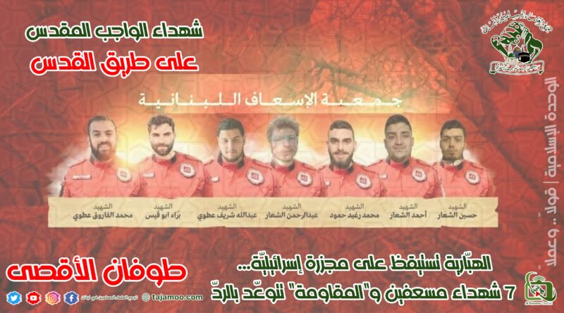 Read Moreتجمع العلماء المسلمين يدين المجزرة التي ارتكبها العدو الصهيوني باستهداف مركزٍ صحيٍ وإغاثيٍ تابع للجماعة الإسلامية: إن قيام العدو الصهيوني