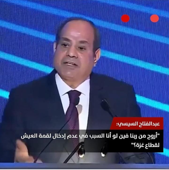 ليظهر الرئيس المصري “عبد الفتاح السيسي” مؤخراً في خطاب متلفز وهو يقول “أنا حروح من ربنا فين لو أنا السبب في إني ما دخلش لقمة عيش أقدر أدخلها لـ غزة، أروح من ربنا فين؟! لا والله، مصر من معبر رفح مفتوح 24 ساعة بالـ 7 أيام بالـ 30 يوم”!!!.