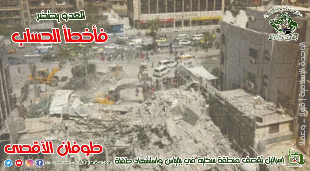 رابعاً: يستنكر تجمع العلماء المسلمين قيام العدو الصهيوني بشن غارة على حي سكني في بانياس بسوريا ما أدى إلى استشهاد طفلة وجرح عشرة أشخاص، ونحن نعتبر أن الحل الوحيد في مواجهة هذه الهجمات هو الرد على الهجمة بالهجمة، ولا حل بالشكوى إلى مجلس الأمن أو إلى أي جهة دولية أخرى، بل الحل هو في المقاومة، الحل هو في الرد على النار بالنار وعلى القصف بالقصف.