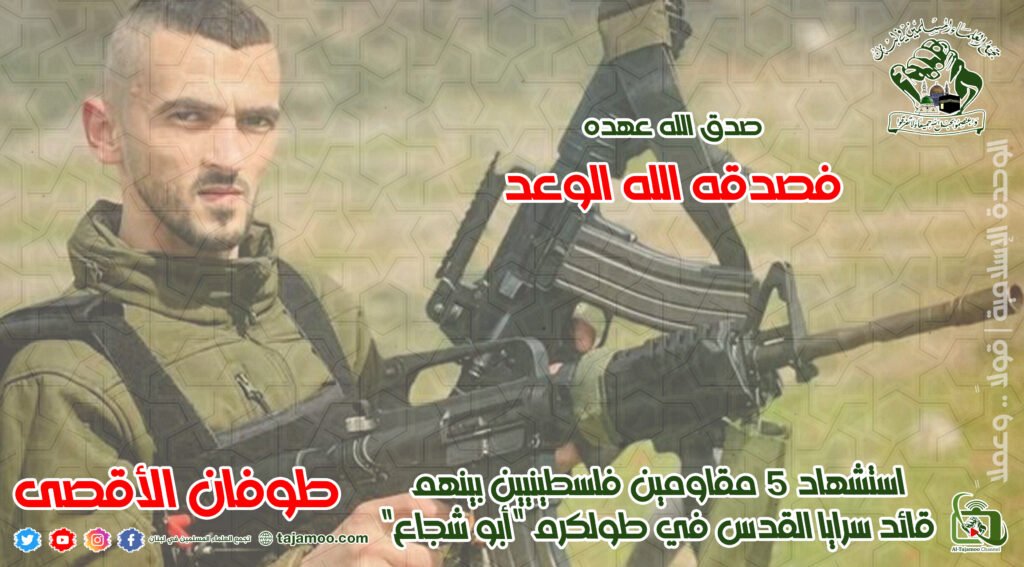 أولاً: يستنكر تجمع العلماء المسلمين الحملة الظالمة ضمن برنامج الإبادة البشرية التي يمارسها العدو الصهيوني على الضفة الغربية والتي كان آخرها ما حصل في طولكرم، حيث حصلت مواجهة بين المقاومين الأبطال ما أدى إلى استشهاد خمسة مقاومين بينهم قائد كتيبة طولكرم التابعة لسرايا القدس- الجناح المسلح لحركة الجهاد الإسلامي وأحد مؤسسيها المجاهد محمد جابر (أبو شجاع)، ويعتبر تجمع العلماء المسلمين أن هذه المعركة لن تُفيد العدو الصهيوني بشيء وأن نهايتها الحتمية ستكون الهزيمة النكراء له.