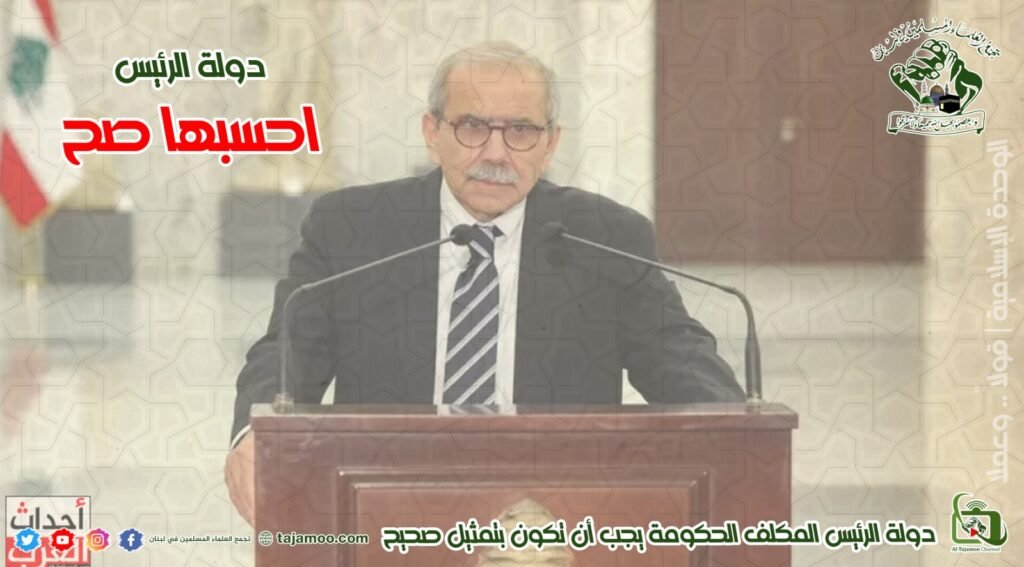 ثالثاً: يطالب تجمع العلماء المسلمين رئيس الحكومة المكلف الدكتور نواف سلام التوصل إلى صيغة اتفاق مع دولة رئيس مجلس النواب الاستاذ نبيه بري حول الوزير الشيعي الخامس بشكل يعين من قِبله، بعد ان يحوز موافقة دولة رئيس مجلس النواب، إذ لا يعقل أن يفرض على من يمتلك التمثيل النيابي الشيعي الكامل في البرلمان ان يُفرض عليه اسم الوزير الذي يمثل هذه الطائفة بالحكومة.