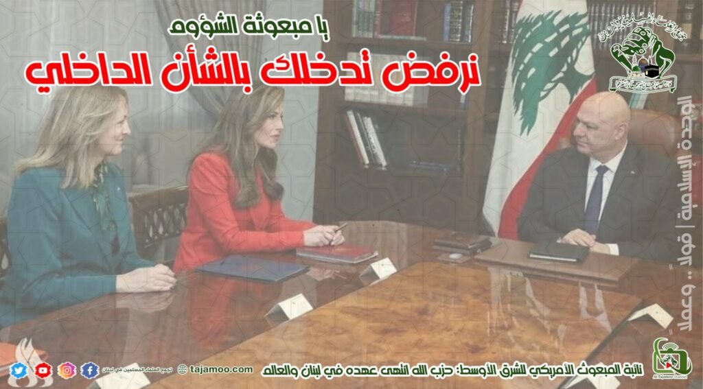 ثانياً: يعتبر تجمع العلماء المسلمين أن المندوبة الأمريكية نائبة المبعوث الأمريكي مورغان أورتاغوس لتشكيل الحكومة اللبنانية وتدخلها السافر في الشؤون الداخلية اللبنانية، ويرفض التجمع هذا التدخل، ويدعو المسؤولين إبلاغ هذه المندوبة أن لبنان يرفض أي شكل من أشكال الوصايات، خاصة بهذا الشكل السافر، ويعلن أنه عبر مؤسساته الدستورية هو المعني بتشكيل الحكومة ومما تتألف.