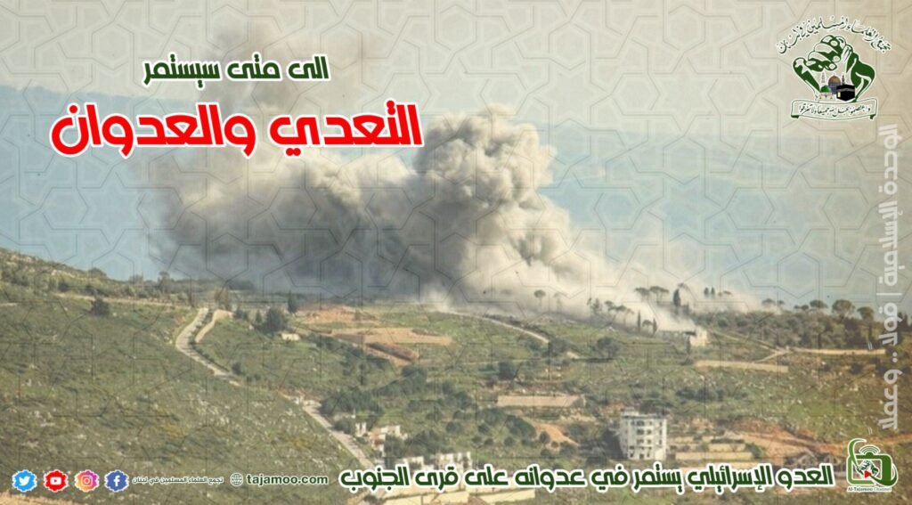 أولاً: يستنكر تجمع العلماء المسلمين استمرار العدو الصهيوني بقصفه لقرى الشريط الحدودي وإغارته على مناطق شمالي وجنوبي نهر الليطاني، وإيقاع خسائر في أرواح المواطنين، ما أدى لارتقاء الشهيد أحمد قاطبي من خلال غارة نفذها العدو الصهيوني بطائرة مسيرة على دراجته النارية في بلدة ارنون، واستشهاد الشاب محمد علي سرور نتيجة استهداف سيارته من قبل العدو الصهيوني على طريق دبل، مع جريح ونجاة مواطنين من الاعتداءات الصهيونية في عدة بلدات.