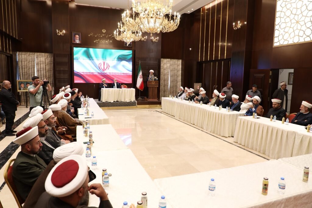 أولاً: يعتبرُ المجتمعونَ من علماءِ أهلِ السنةِ والجماعةِ والشيعةِ الإماميةِ أن الاعتداءَ على الجمهوريةِ الإسلاميةِ الإيرانيةِ هو اعتداءٌ على الأمةِ الإسلاميةِ ككل وليسَ على إيرانَ فقط، وبالتالي فإننا نعتبرُ أنفسَنا مستهدفينَ بهذا الهجومِ، ويجبُ علينا انطلاقاً من أنَّ المسلمَ للمسلمِ كالجسدِ الواحدِ إذا اشتكى منهُ عضوٌ تداعى لهُ سائرُ الأعضاءِ بالسهرِ والحمى، نصرةَ الجمهوريةِ الإسلاميةِ الإيرانيةِ بكل ما أوتينا من قوةٍ وما فعلناهُ اليومَ هو في إطارِ ما أوجبَ اللهُ على العلماءِ من “أن لا يقاروا على كظةِ ظالمٍ ولا سغبِ مظلوم” فإننا نعلنُ أننا جزءٌ من هذهِ المعركةِ وهي تستهدفُنا، ويجبُ علينا الدفاعُ عن أنفسِنا بكل الوسائلِ الممكنة.