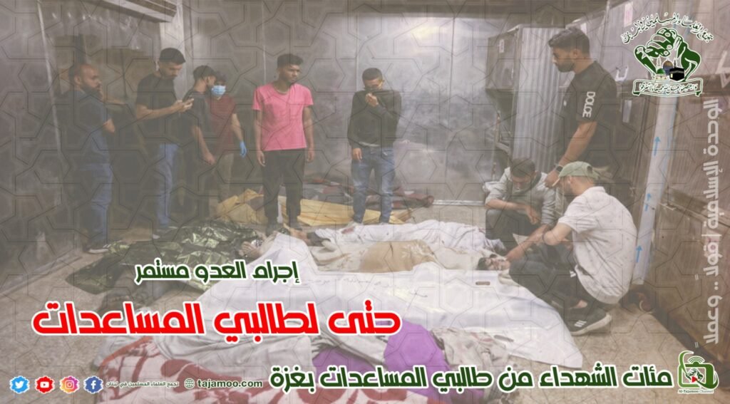 ثانياً: يعتبر تجمع العلماء المسلمين ان الأوضاع الإنسانية في غزة باتت تشكل خطراً على حياة جميع أهاليها الذين يعانون من مجاعة حقيقية يستغلها العدو الصهيوني لاصطياد المواطنين الجائعين الذين يذهبون لأماكن توزيع المساعدات للحصول عليها فيتلقون ضربات تنزل في صفوفهم عشرات الشهداء ومئات الجرحى في اكبر عملية إبادة يشهدها العالم، وما من جهة تقف لمساعدة هؤلاء المستضعفين ورفع الظلم عنهم، سوى ما صدر خجولاً عن المتحدث باسم الأمين العام للأمم المتحدة ستيفان دوجاريك الذي قال ان الوضع في غزة اشبه بفاجعة وندد بتسييس المساعدات الإنسانية.