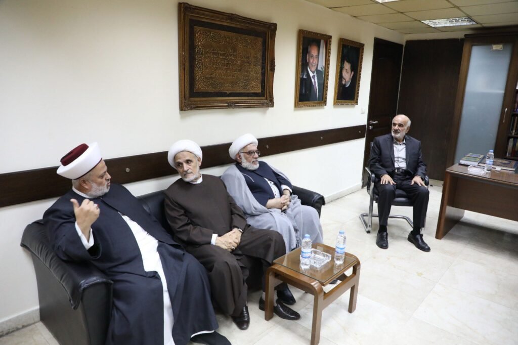 زار وفد من تجمع العلماء المسلمين برئاسة رئيس الهيئة الإدارية سماحة الشيخ الدكتور حسان عبد الله مقر المكتب السياسي لحركة أمل، وكان في استقبالهم رئيس المكتب السياسي الحاج جميل حايك، بحضور عدد من الأعضاء.