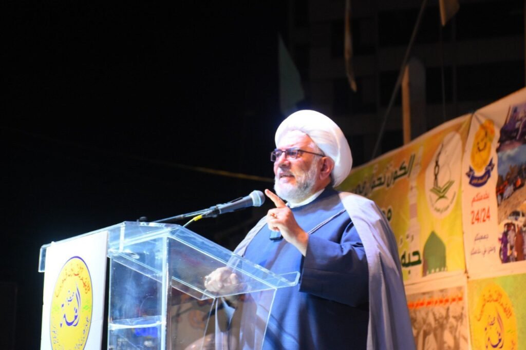 هذا ان دل على شيء أيها السادة والسيدات أننا عاهدنا ربنا سبحانه وتعالى عهداً ثابتاً صادقاً مخلصاً قوياً أن نبقى علماء بين السنة والشيعة، متكاتفين متعاونين نعمل معاً لرفعة شأن الإنسان في كل مكان، هذا عهد أخذناه على عاتقنا أيها السادة الأفاضل، من هنا من صيدا من هذه المنطقة الحبيبة على قلوبنا جميعاً ونحن على بعد مسافة أقل من مائتي كيلومتر مع القدس الشريف، القدس الحبيبة التي تئن اليوم تحت نير ضربات العدو الغاصب لفلسطين في غزة والضفة والقدس، نخاطبهم في هذه الأيام المجيدة في ذكرى رسول الله صلى الله عليه وآله وصحبه وسلم، نقول لهم من لبنان الذي عهدتموها على الدوام جنباً إلى جنب مع مقاومتكم الباسلة، مع عنفوانكم، مع شرفكم، مع صبركم، مع جوعكم، مع عطشكم، إننا اليوم نقول لكم يا أهل غزة، يا أطفال غزة، يا كبار غزة، يا نساء غزة، لستم وحدكم من جاع لله، رسول الله عليه الصلاة والسلام في صدر الإسلام في صدر الدعوة الإسلامية جُوَّع وعُطِّش وحُوصِر في شِعْبِ ابي طالب بالقرب من مكة، من أقدس بقعة في الأرض.