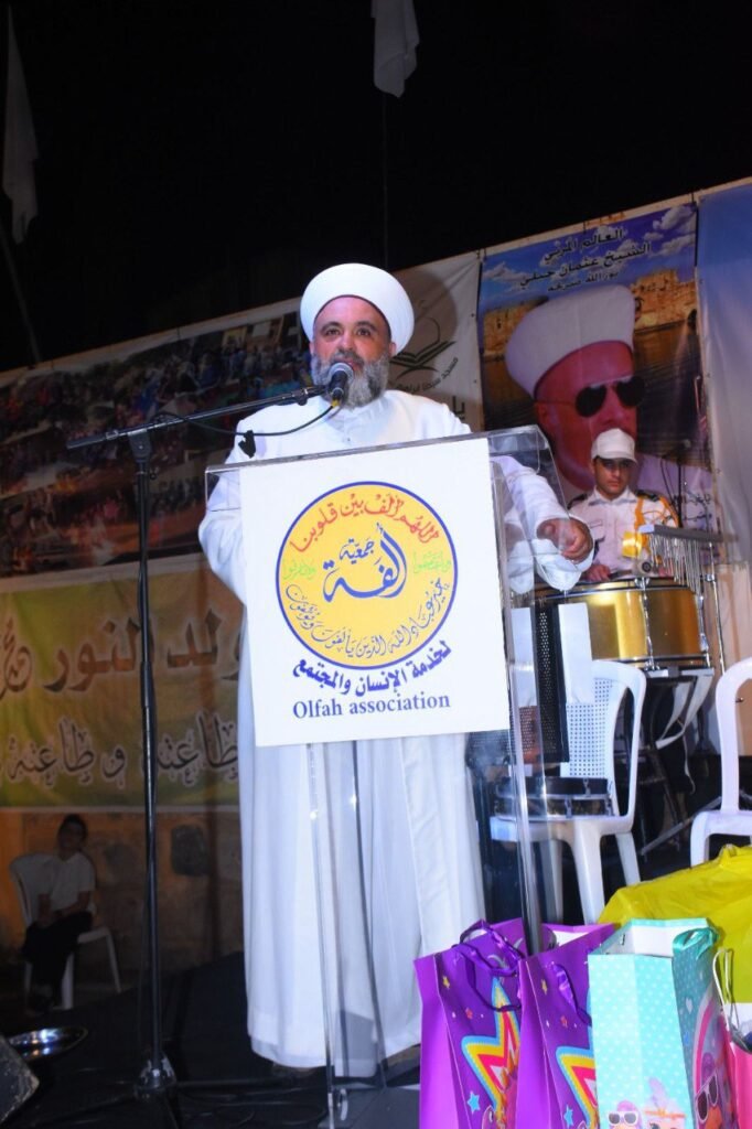 تخلل الاحتفال كلمة لمسؤول العلاقات العامة في تجمع العلماء المسلمين سماحة الشيخ حسين غبريس هذا نصها: