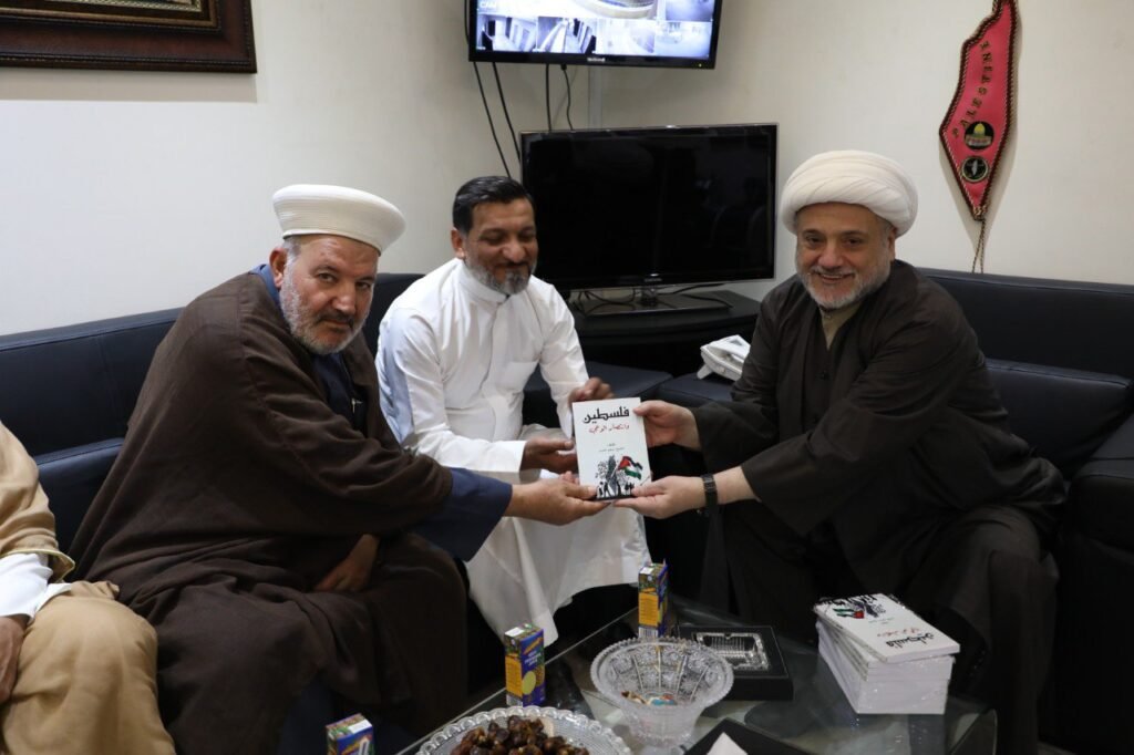 في نهاية اللقاء قدم الشيخ سعيد قاسم لسماحة الشيخ الدكتور حسان عبد الله كتابه الجديد بعنوان “فلسطين وانتصار الوعي” الذي يعبر عن حالة الأمة عامة والشعب الفلسطيني خاصة، في أعقاب التطورات الأخيرة على الساحة الفلسطينية.