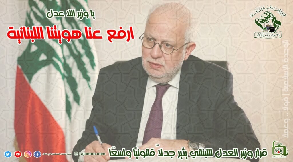 ثالثاً: يستنكر تجمع العلماء المسلمين إقدام وزير العدل عادل نصار على إصدار مذكرة تلزم كُتَّاب العدل بإجراءات من أجل إرضاء الولايات المتحدة الأمريكية، مع أن مسألة التعريف الأمريكي للإرهاب مخالف لكل قواعد شرعة حقوق الإنسان، إذ أنها تعتبر المقاومة إرهاباً، وبالتالي فإن هذا القرار سيؤدي إلى التضييق على المقاومين ويجب العمل على إلغائه فوراً.