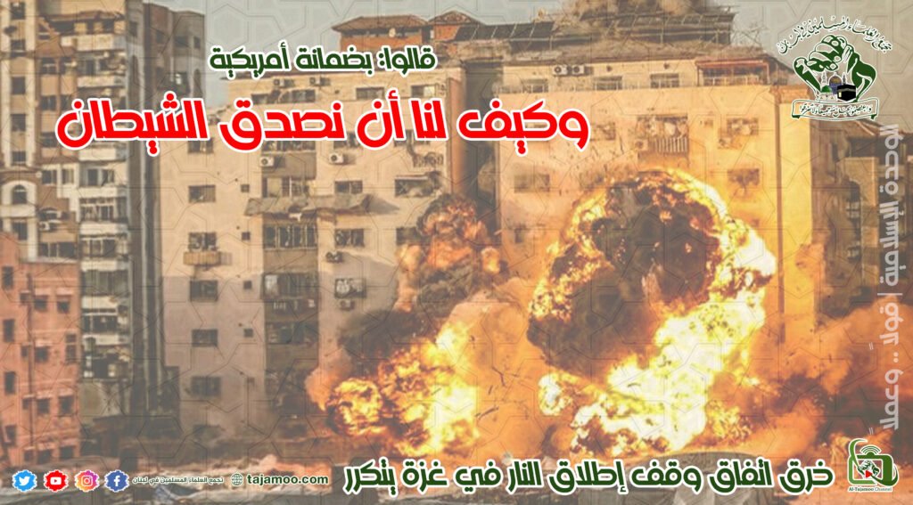 رابعاً: يستنكر تجمع العلماء المسلمين استمرار العدو الصهيوني بخرقه لوقف إطلاق النار في غزة وقيامه بالأمس بإطلاق النار على المواطنين ما أوقع شهداء وجرحى، وهذا يعطي للمقاومة الفلسطينية الحق بالرد على العدو الصهيوني الذي لا يُعد خرقاً لاتفاق وقف إطلاق النار لأنه من باب الحق المشروع في الدفاع عن النفس.