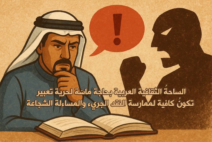 كما تفتقرُ الساحةُ الثقافية العربية إلى وجود تقليد راسخ في النقد الموضوعي البناء.. وتعاني من حاجة ماسّة لحرية تعبير تكونُ كافية لممارسة النقد الجريء والمساءلة الشجاعة، حيث ثقافة المنع ومصادرة الرأي والاستبداد السياسي راسخة وعميقة.. ولعلَّ الطامة الكبرى هنا تأتي مع عودة هيمنة الخطابات الطائفية والتعصب للمذهب والطائفة، ومحاربة الاختلاف، أي عدم وجود فضاء ثقافي عربي رصين ومعياري عملي لتقبل الرأي الآخر المغاير، فكراً وعملاً..