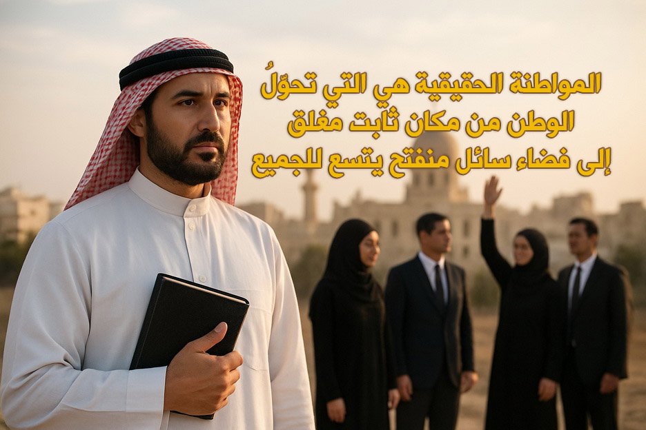 وفي هذا النموذج، يتحول الوطن من كيان ثابت إلى حركة ديناميكية، قائمة على الإنتاج والقيمة والتطور الحضاري. هذا التحوّل لا يلغي قيمة الأرض والانتماء التقليدي، بل يثريهما بإضافة حقوق الإنسان واحترام التنوع والاختلاف، لتصبح هذه العناصر عوامل دفعٍ وبناء للمجتمع، لا أسبابًا للتفكك والهدم.
