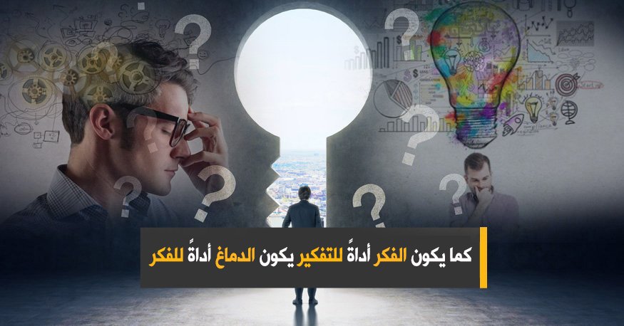 وكما يكون الفكر أداةً للتفكير يكون الدماغ أداةً للفكر؛ حيث أن الفكر في محوره روحي، وهو ما يجعله إنسانياً – أي خاصاً بالبشر دون الكائنات الحية الأخرى -، ولكن لا يمكن أن يعتمد على الروح فقط فهو يرتبط بالمادة والتي هي الدماغ، فالدماغ هو الآلة أو الأداة المناسبة للفكر، فكل إنسان بحاجة لدماغ سليم ليقوم بفعل الفكر. فيكون بذلك التفكير عملية مادية روحية. والتفكير يُعرّف أيضاً بأنه سلسلة من العمليات الذهنية تشمل الملاحظة والمقارنة والتصنيف والاستنتاج، يقوم بها الدماغ إما بسبب وازع أو مؤثّر خارجي تمّ استقباله بأحد الحواس الخمسة، أو من وازع داخلي مثل طلب المعرفة أو التصوّف.