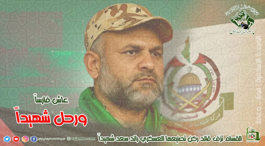 رابعاً: يستنكر تجمع العلماء المسلمين إقدام العدو الصهيوني على اغتيال الشهيد رائد سعيد سعد قائد منظومة صناعات القسام، ويعتبر أن هذا العمل الإجرامي هو انتهاك إضافي لوقف إطلاق النار، وتحت نظر الولايات المتحدة الأمريكية والدول الراعية لهذا الاتفاق، من دون أن يكون هناك أي ردٍ رادع للعدو الصهيوني عن القيام بمثل هذه الأعمال.