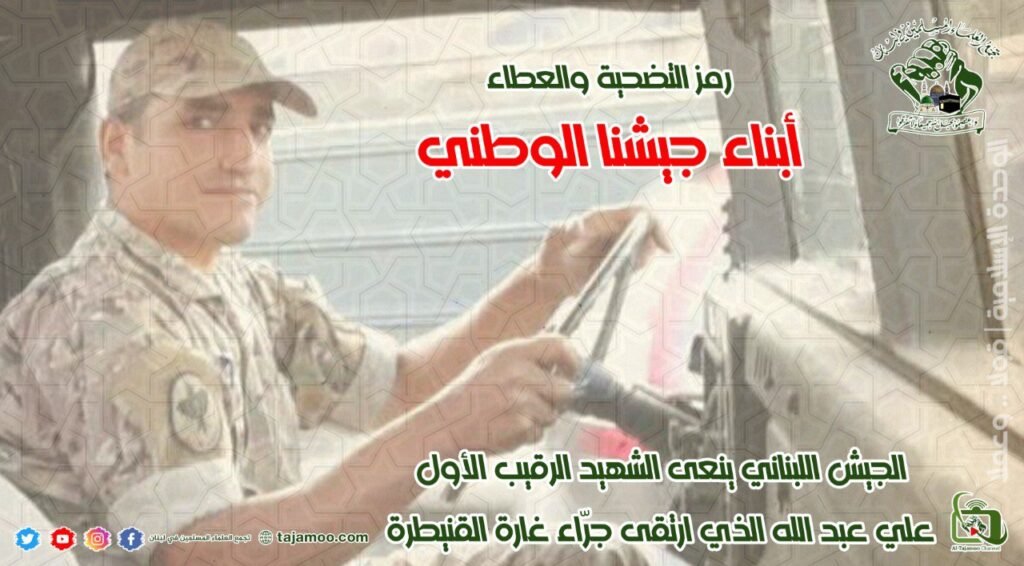 ثانياً: يستنكر تجمع العلماء المسلمين استمرار الاعتداءات الصهيونية على لبنان، والتي كان آخرها استهداف سيارة على طريق عقتنيت – القنيطرة في قضاء صيدا، ما أدى إلى ارتقاء ثلاثة شهداء أحدهم الرقيب الاول في الجيش اللبناني علي عبد الله، كما ويستنكر التجمع إطلاق محلقة صهيونية قنبلة بالقرب من مزارعين عند أطراف بلدة الوزاني، وتنفيذ العدو الصهيوني لعدوان على بلدة ميس الجبل من خلال تفجيره لأحد المنازل المتضررة، ما أدى إلى تدميره بشكلٍ كامل.