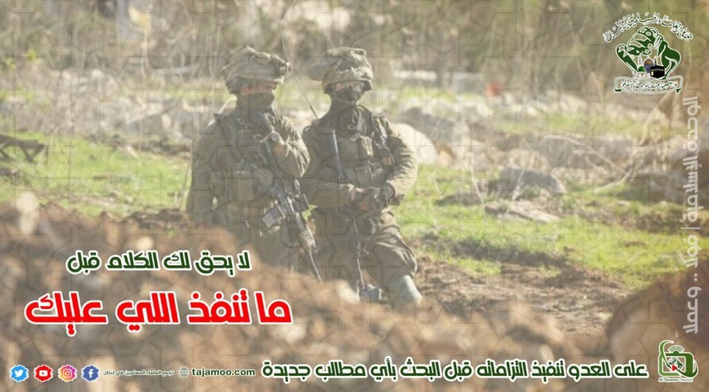 أولاً: يستنكر تجمع العلماء المسلمين إعلان رئيس الحكومة نواف سلام أن الدولة اللبنانية جاهزة للانتقال إلى المرحلة الثانية من خطة حصر السلاح في شمال الليطاني، دون إلزام العدو الصهيوني بالانسحاب من الأراضي التي يحتلها ووقف اعتداءاته وإطلاق الأسرى التي هي من صلب الاتفاق، وللبنان أن يجمد أي إجراء حتى تحقيقه، ويعتبر التجمع ذلك خدمة مجانية للعدو الصهيوني يجب وقفها.