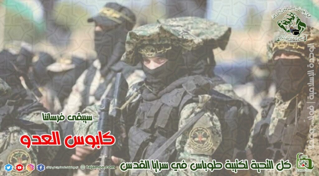 ثالثاً: يتوجه تجمع العلماء المسلمين بالتحية لأبطال سرايا القدس، كتيبة طوباس على تمكنهم مساء أمس من التصدي لاقتحام قوات العدو الصهيوني من عدة محاور بالوسائط النارية المناسبة، وتمكنهم من إمطار التعزيزات العسكرية لقوات المشاة بزخات كثيفة من الرصاص، محققين إصابات.