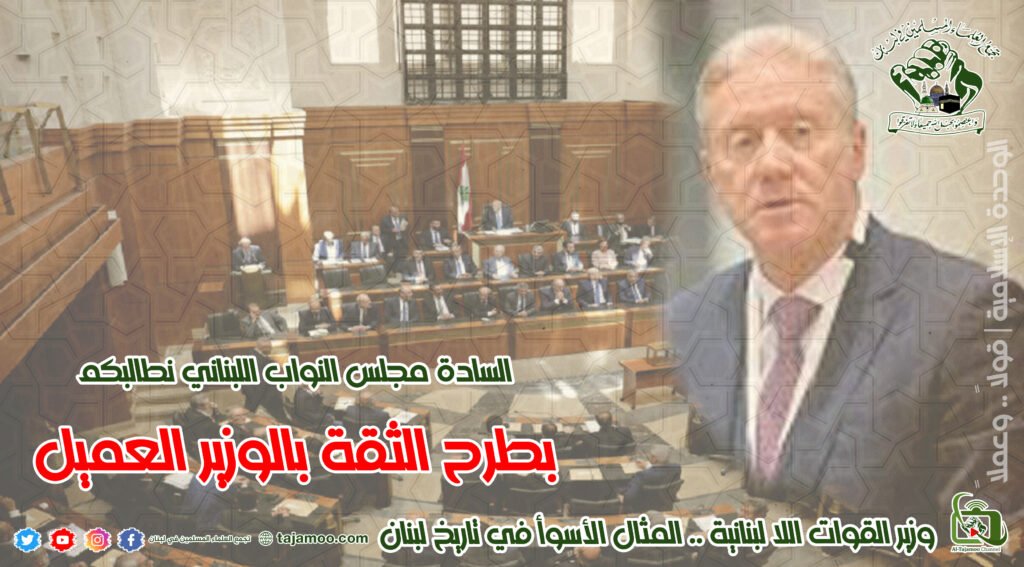 ثالثاً: ندعو النواب الكرام والمجلس النيابي لمساءلة وزير خارجية القوات اللبنانية كما الحكومة، عن هذه المواقف وطرح الثقة بهذا الوزير، وإذا ما تبنت الحكومة أو رئيسها هذه المواقف نطالب بطرح الثقة بالحكومة ككل.