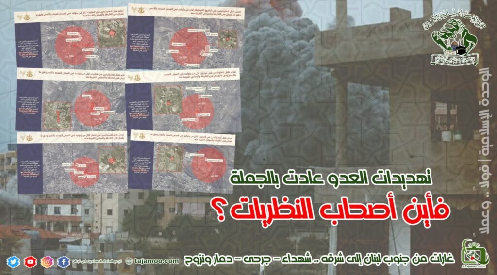 أولاً: يستنكر تجمع العلماء المسلمين قيام الطيران الحربي للعدو الصهيوني بشن عدوان واسع وخطير طال بلدات الكفور وجرجوع وقناريت وأنصار والخرايب، ما أدى الى تدمير عدد كبير من المباني وتهجير أكثر من 70 عائلة باتوا في العراء دون أي تدخل من الدولة لتأمين الإيواء مع ما يحتاجون إليه، حيث أنهم خرجوا دون أي مستلزمات للعيش الكريم.