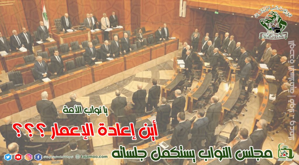 أولاً: يدعو تجمع العلماء المسلمين النواب الكرام لعدم الموافقة على الموازنة إلا إذا تضمنت بنوداً واضحة لتمويل إعادة إعمار ما هدمه العدو الصهيوني، وكذلك تضمينها مبالغ كافية لإنصاف موظفي القطاع العام وروابط التعليم الرسمي والعسكريين المتقاعدين ويؤيد التجمع تحركهم لنيل مطالبهم ويستنكر التعرض لهم من قبل القوات الأمنية.