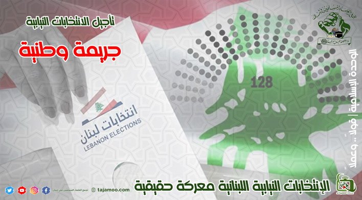ثانياً: يعتبر تجمع العلماء المسلمين أن إجراء الانتخابات النيابية في موعدها المقررة وبالقانون الساري، هو ضرورة وطنية لكي تنتج مؤسسات دستورية جديدة، ويُعرف ما هو رأي الشعب اللبناني الحقيقي مما يحصل، ويرفض التجمع أي دعوة لتأجيل الانتخابات أو أي تعديل لقانون الانتخاب الساري المفعول.