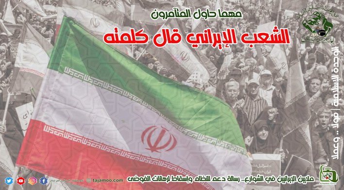 ثالثاً: يتوجه تجمع العلماء المسلمين بالتحية للشعب الإيراني البطل الذي خرج بالملايين في كل محافظات إيران في الذكرى السابعة والأربعين لانتصار الثورة الإسلامية في إيران تأييداً للدولة وللثورة الإسلامية ولسماحة السيد القائد آية الله العظمى السيد علي الخامنئي، وكان هذا التعبير رداً عملياً على كل من يسعى لتخريب المجتمع الإيراني وإدخاله في الفوضى، خصوصاً الولايات المتحدة الأمريكية والكيان الصهيوني.