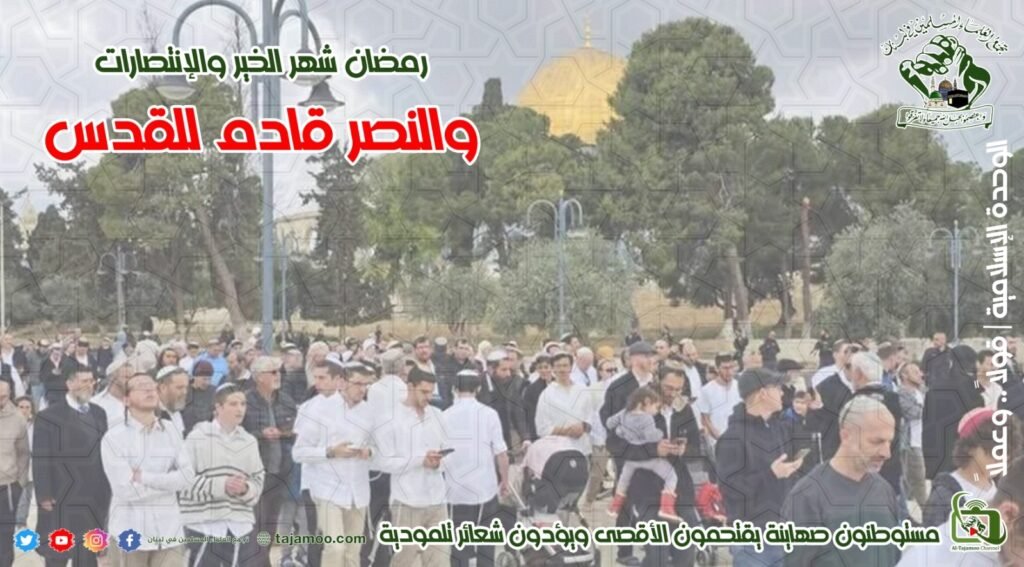 رابعاً: يستنكر تجمع العلماء المسلمين إقدام قطعان المستوطنين على اقتحام المسجد الأقصى وإقامة صلوات تلمودية أمام قبة الصخرة في محيط المسجد، وقيام قوات العدو الصهيوني بتأمين الحماية لهم، بالإضافة إلى تمديد فترة بقاء المستوطنين في المسجد الأقصى في شهر رمضان، تفرض على الدول الإسلامية خاصة تلك الغائبة عن الوعي القيام بإجراءات تمنع هذا الامر.