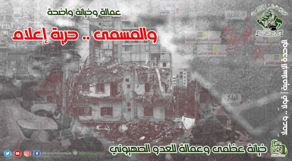 ثالثاً: يستنكر تجمع العلماء المسلمين قيام بعض المؤسسات الإعلامية بتحديد نقاط في الضاحية الجنوبية على أنها مراكز للمقاومة قامت بعدها قوات العدو الصهيوني بالإغارة عليها وتدميرها. ويعتبر التجمع هذا العمل هو خيانة عظمى وعمالة للعدو الصهيوني تفرض تحرك القضاء لمحاكمة أصحاب المحطة ومقدم ومعد البرنامج الذي حدد للعدو أهدافه.