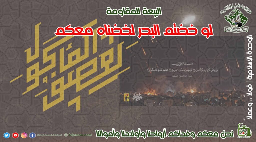 ثالثاً: للمقاومة نقول نحن معكم وفداكم أرواحنا وأولادنا وأموالنا ونحن معكم مهما كانت التضحيات حتى تحقيق النصر النهائي.