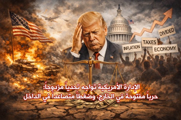 وقد ترافقت هذه الاحتجاجات مع حوادث إطلاق نار قرب البيت الأبيض، وانسحاب ترامب من مؤتمر صحفي، ما يعكس ضغوطاً داخلية متزايدة. ولا يقتصر هذا التحول على الشارع، بل يمتد إلى وسائل الإعلام والنخب السياسية، حيث بدأت ملامح انقلاب في الخطاب الإعلامي، مع تزايد الانتقادات لأداء الإدارة الأمريكية في إدارة الحرب، واتهامات بالتخبط وغياب الاستراتيجية الواضحة. كما تصاعدت مواقف عدد من السياسيين الذين باتوا يطالبون بمراجعة شاملة للنهج الحالي، محذرين من تداعيات استمرار الحرب على الاستقرار الداخلي والمكانة الدولية للولايات المتحدة. في ضوء هذه التطورات، يبدو أن الإدارة الأمريكية تواجه تحدياً مزدوجاً: حرباً مفتوحة في الخارج، وضغطاً متصاعداً في الداخل، ما يضعها أمام معادلة معقدة قد تعيد رسم حدود قدرتها على الاستمرار في هذا المسار.